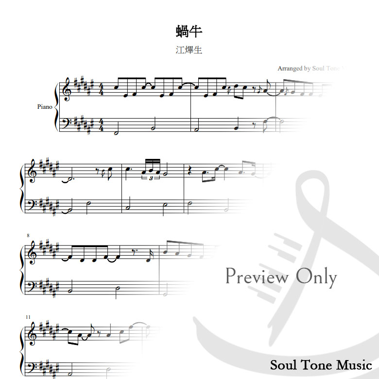 編曲模式: 以歌曲旋律為主,有小量16分音符在旋律部分,左手配合簡單伴奏