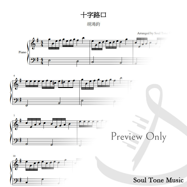 編曲模式: 以歌曲旋律為主,有小量16分音符在旋律部分,左手配合簡單伴奏